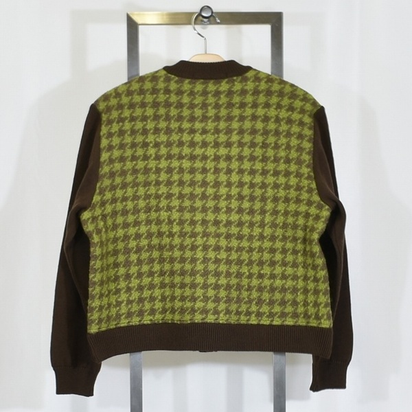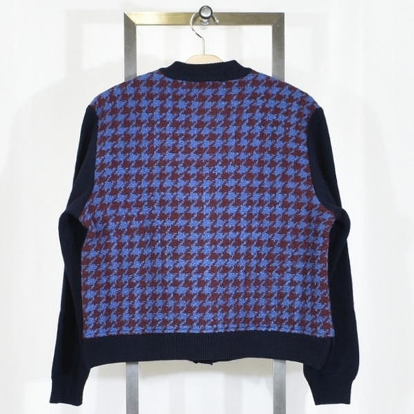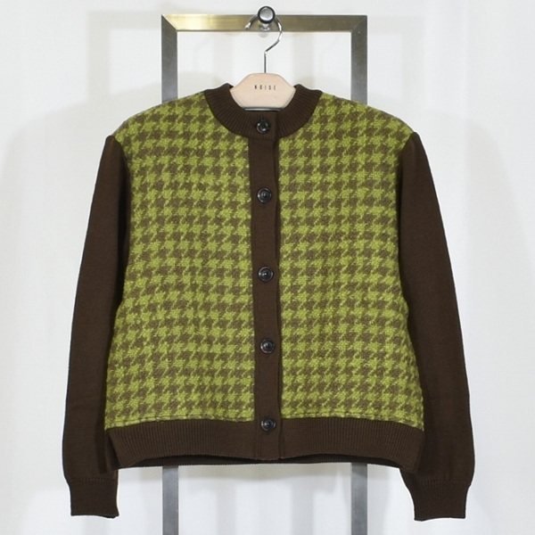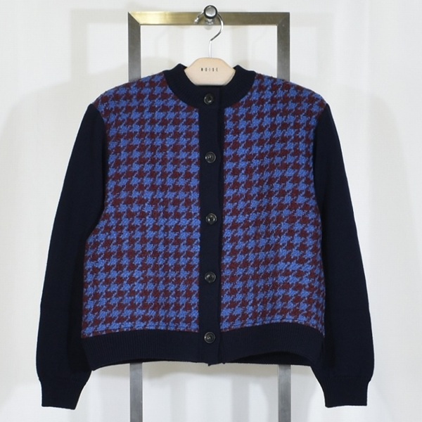 異素材が美しく交差する、千鳥柄を主役にした上品コンビカーデ。